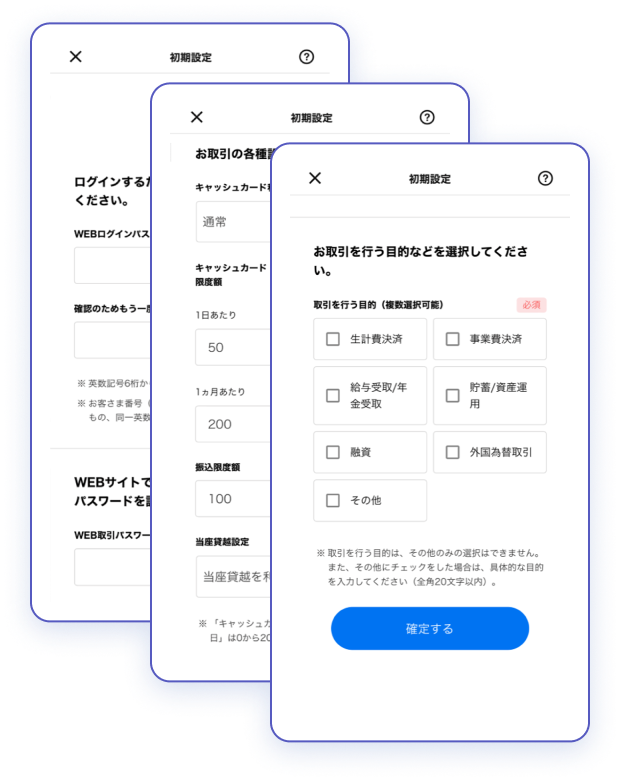 ※1 上記で設定した項目は、アプリ「みらいバンク」ログイン後の「お客さま情報照会・変更」にて変更できます。