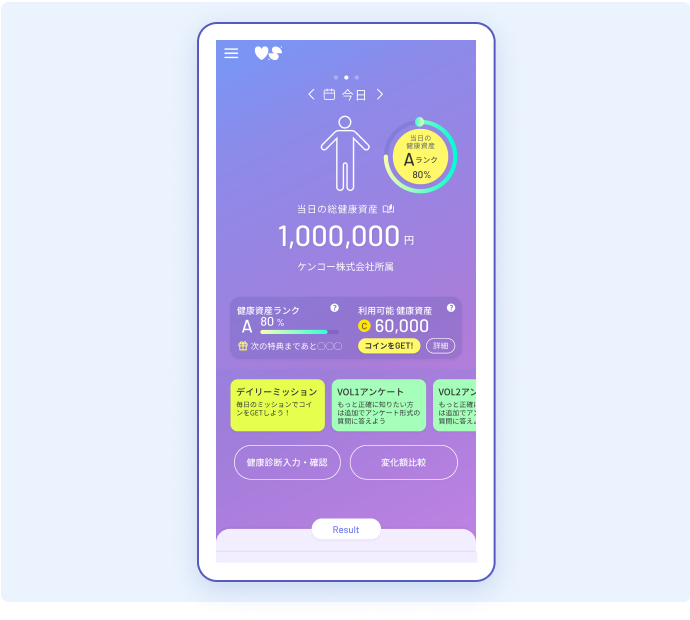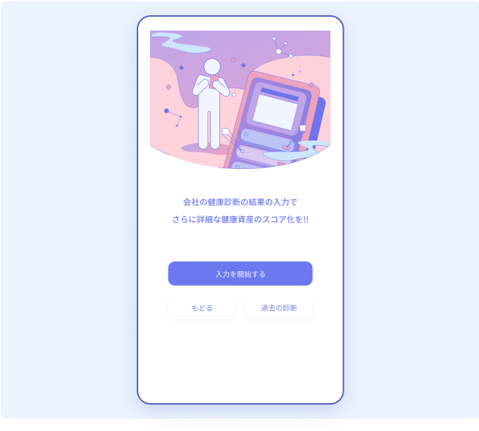 アンケートや健康診断の結果を入力することによって、あなたの健康に関するスコアは精緻化されていきます。