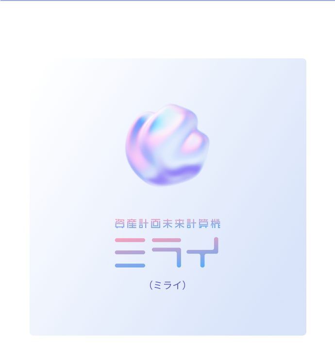 最新の金融AI機能が、あなたの未来を加速させる。現在のキャッシュフローの健全性と将来の資産寿命を試算できます。また、入力いただいたデータを元にみらいバンクの金融AIがあなたのことを学習します