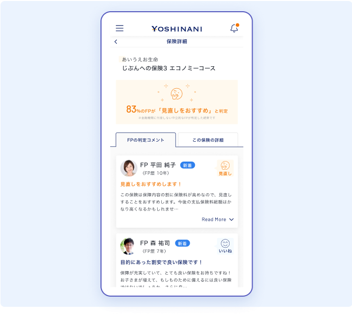 販売手数料を追い求めない診断アプリなので、本当に最低限必要な分だけ保険加入するためのアドバイスをしてくれます。